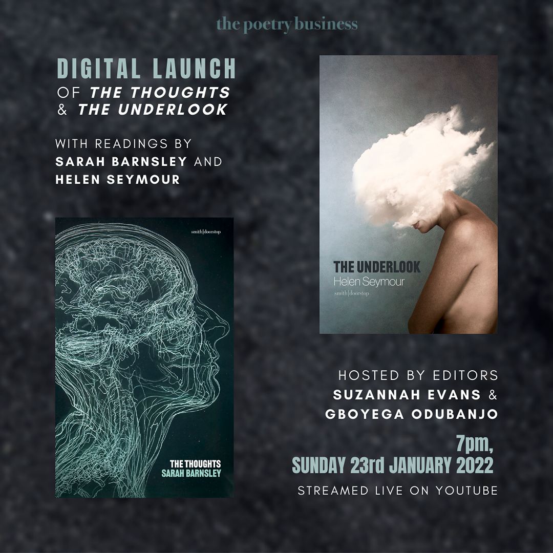 Sunday 23 January 2022, 7pm-8pm, online-only double launch of Sarah Barnsley’s The Thoughts and Helen Seymour’s The Underlook. Register your interest here. Watch on YouTube here. Download the event flyer here.